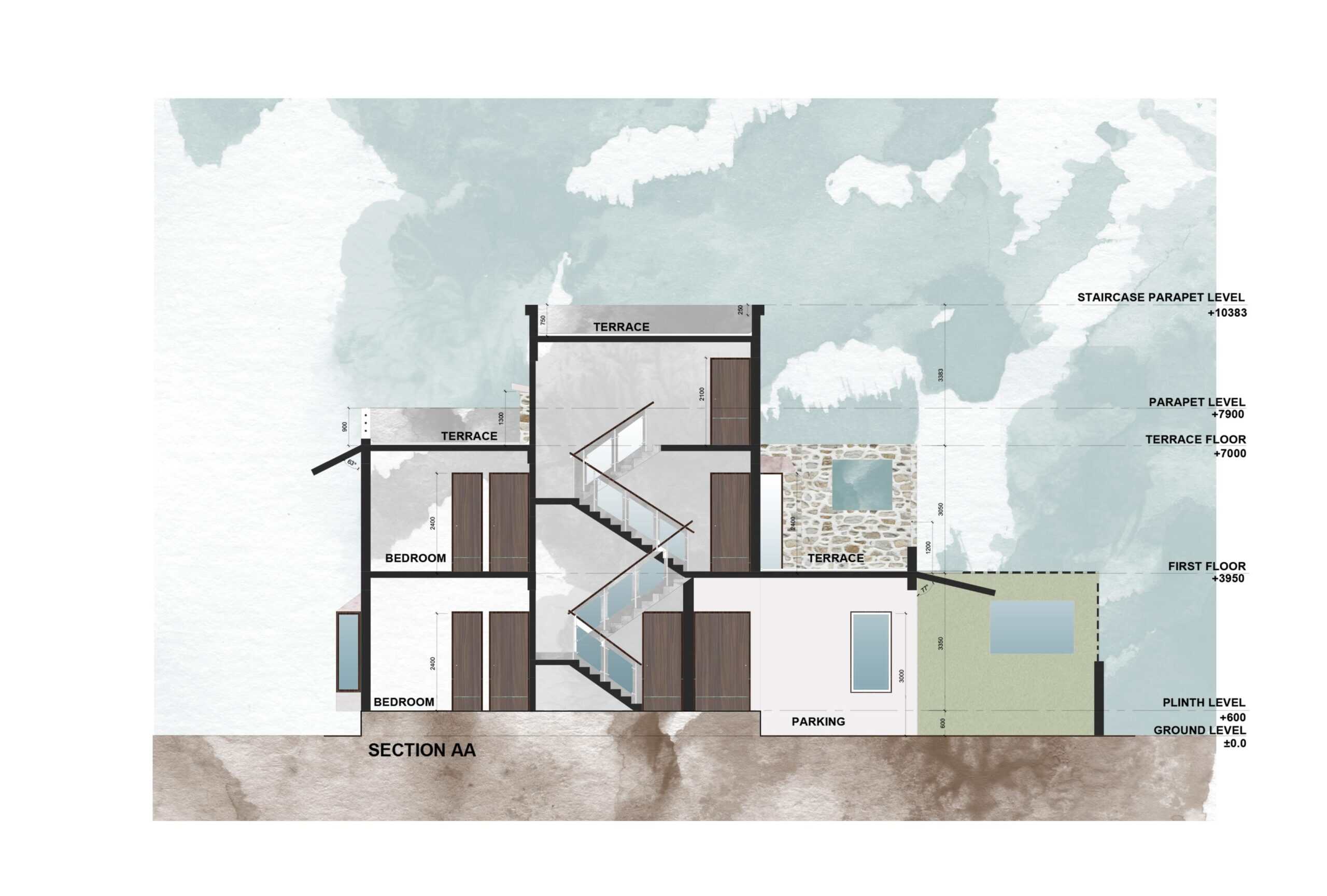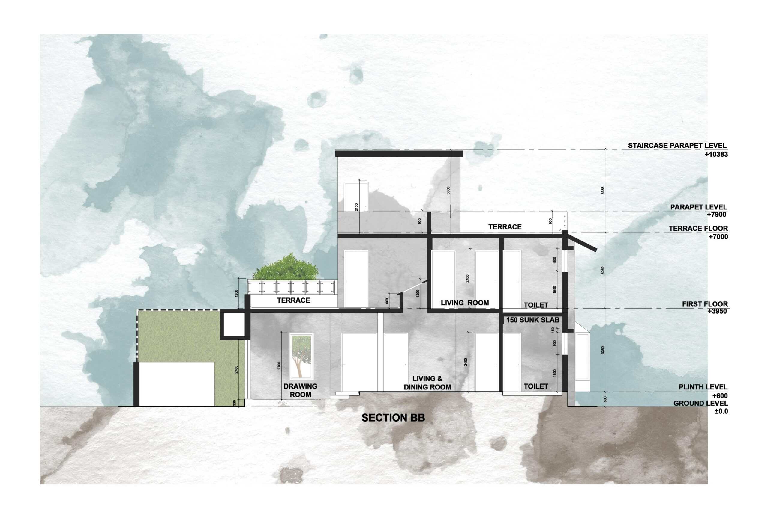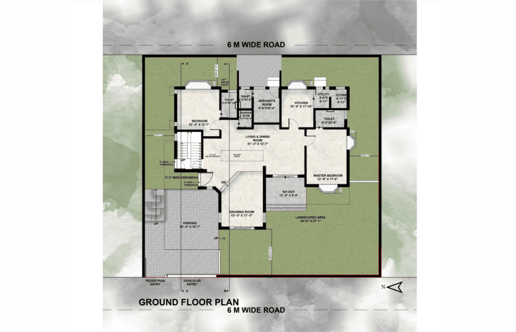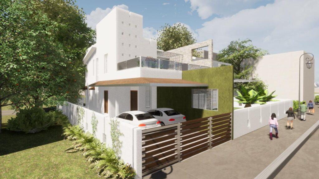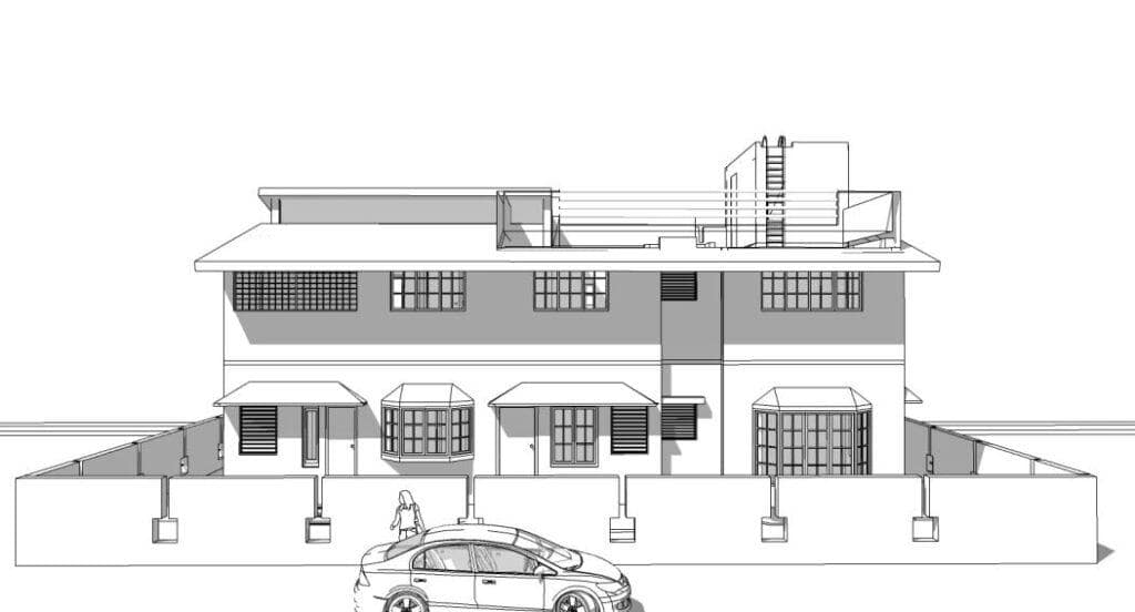 This G+1 house is designed on the colonial style of architecture. There are access roads on 2 sides. Like any other design of ours, even this structure is designed with careful consideration to function and climate.