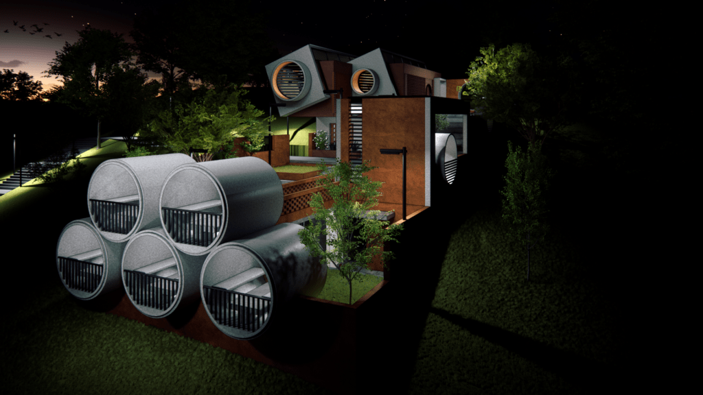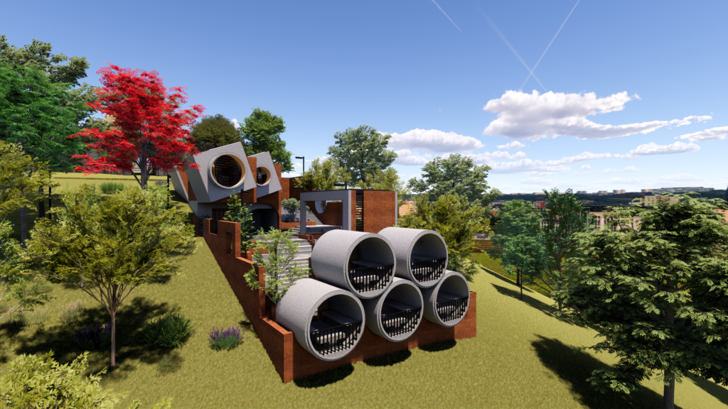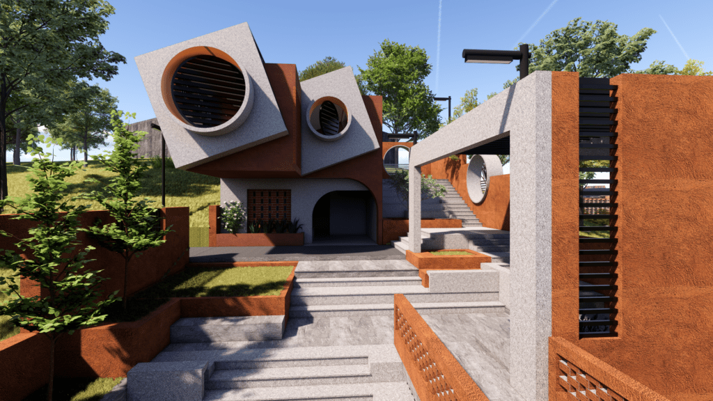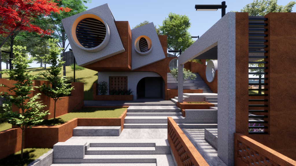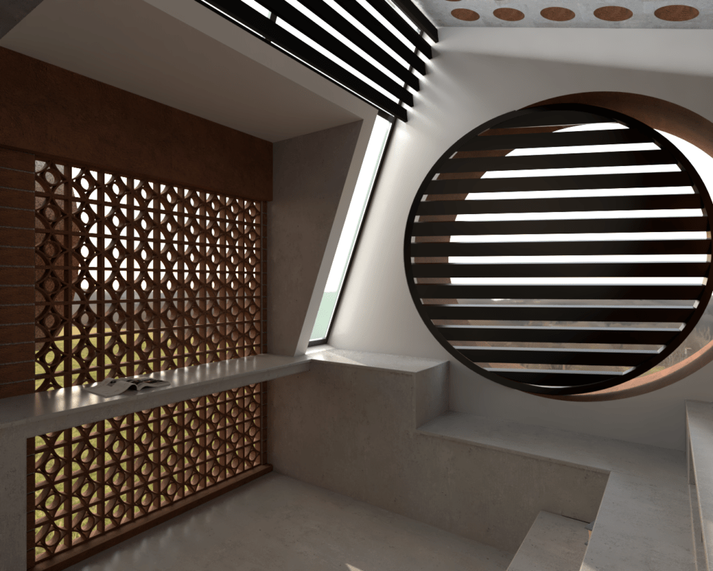 The study space for underprivileged children, designed as a modern Gurukul, is a transformative sanctuary tailored for young learners. Inspired by ancient Indian Gurukul traditions, it blends timeless principles with innovative design. The space features modular, cylindrical learning pods made from sustainable materials, fostering an interactive and inclusive environment. Open courtyards and natural light enhance the serene atmosphere, while flexible layouts support group study, individual reflection, and creative exploration. Equipped with essential resources like chalkboards and seating, the design prioritizes accessibility and durability, ensuring a nurturing space where children can connect with their roots, build confidence, and envision a brighter future.