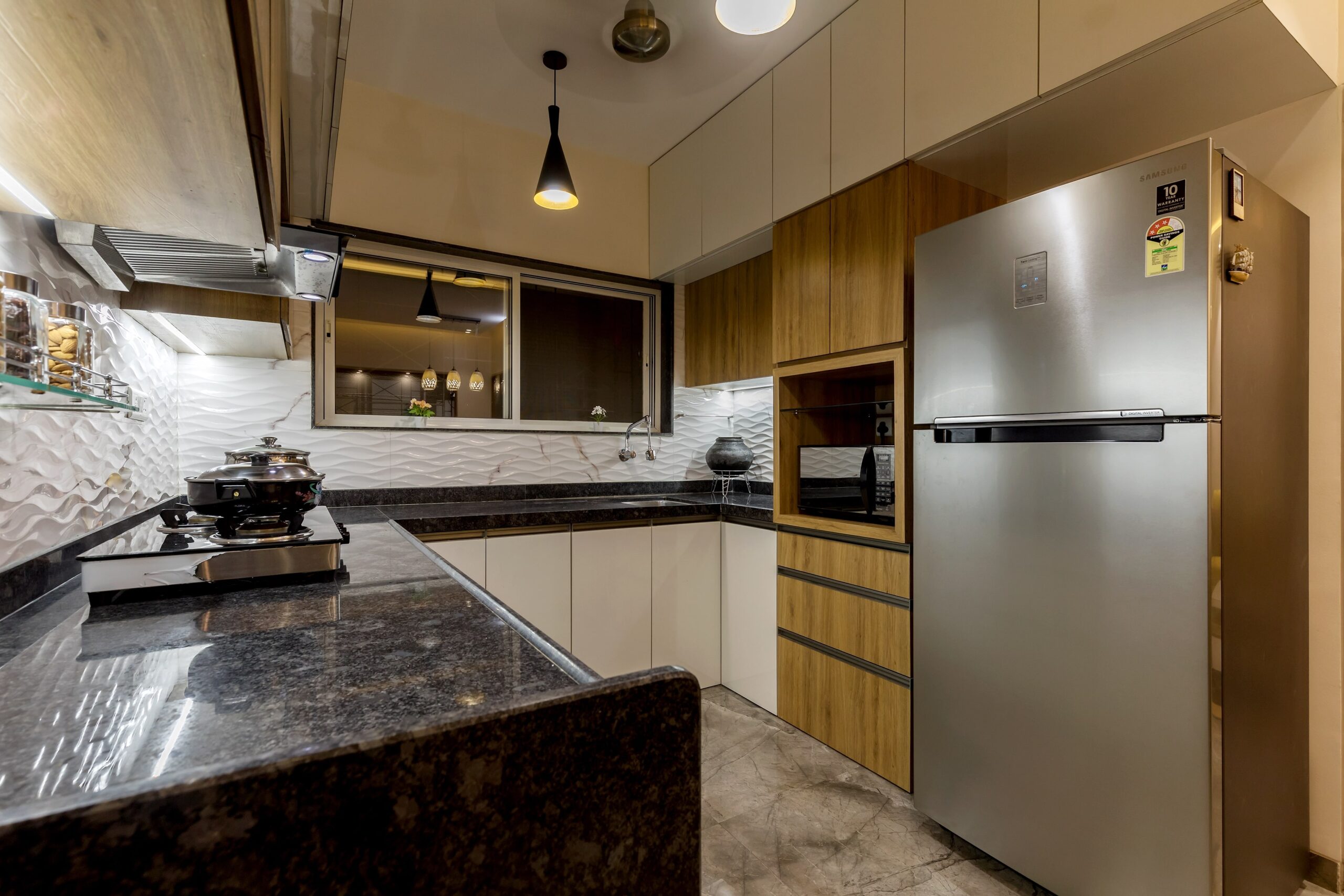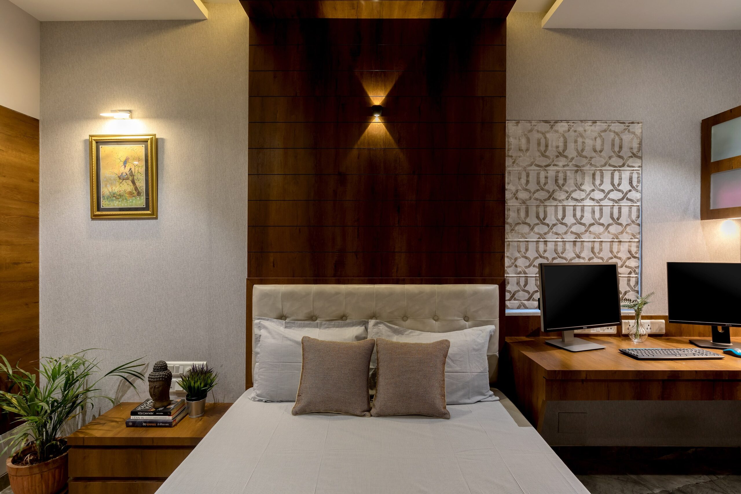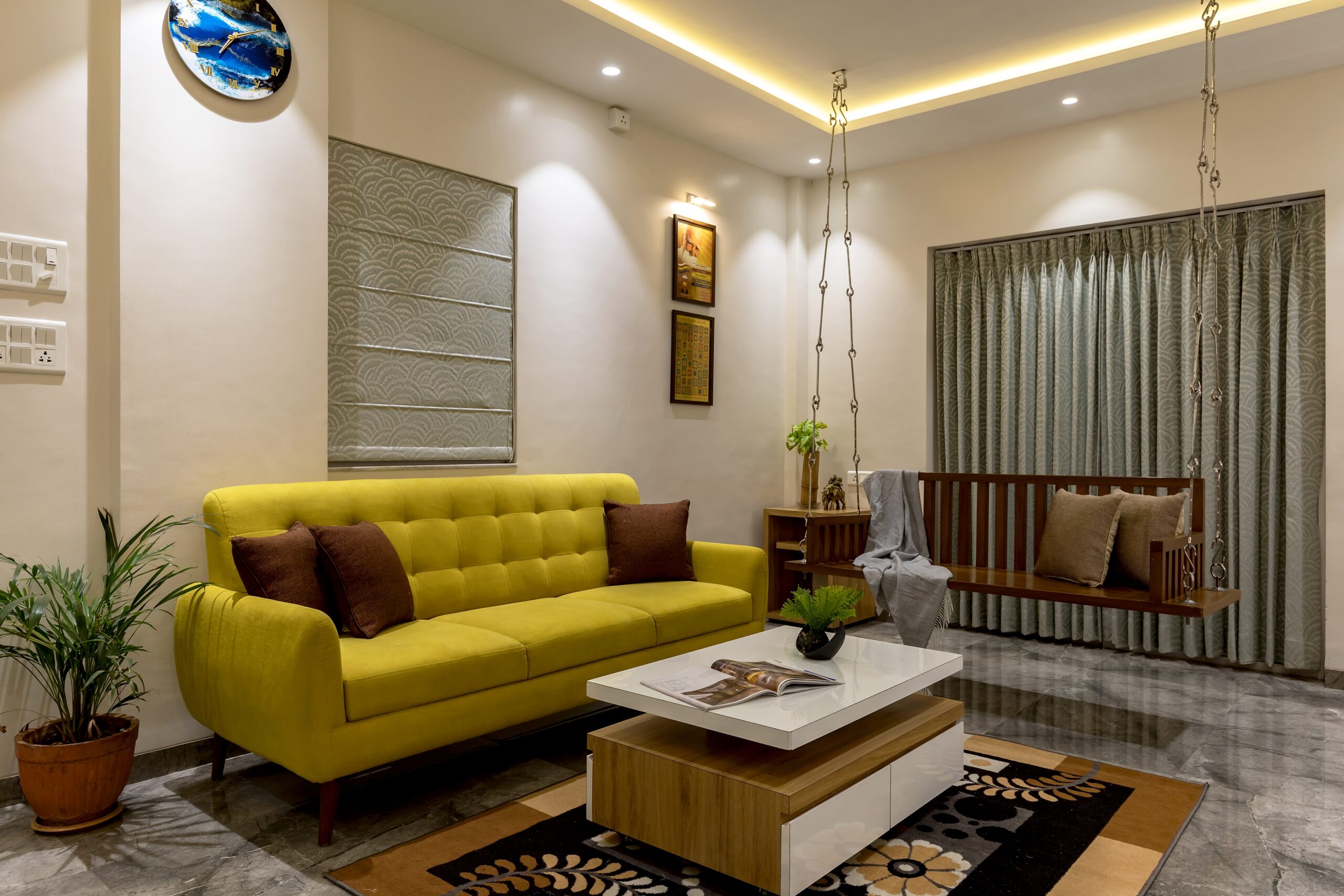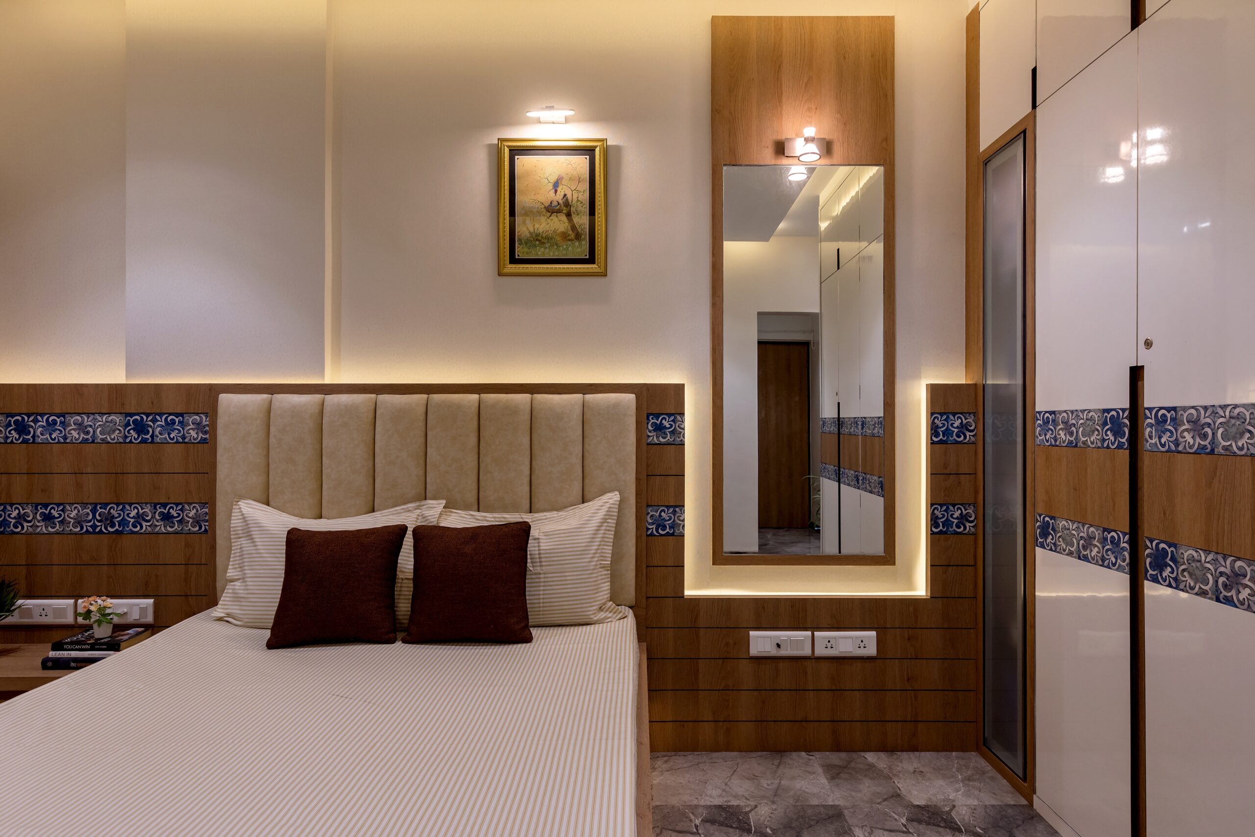 With an area of 1800 sqft, this 3BHK apartment was a resale property, completely renovated including the flooring and toilets. Every room was carefully designed for every occupant of 3 generations staying together. The parent’s room was given a traditional look, the kids room was in bright colours with Lego theme and the owner’s room was modern contemporary with considerable use of dark brown wood.
