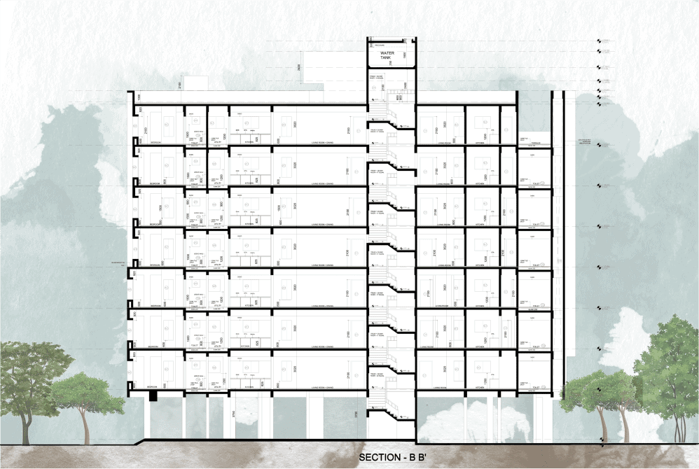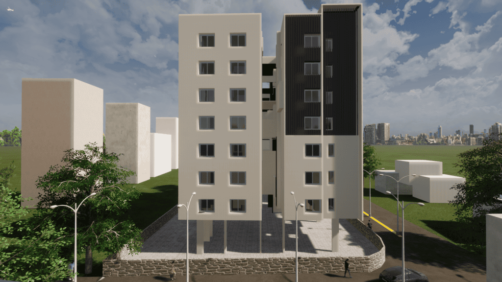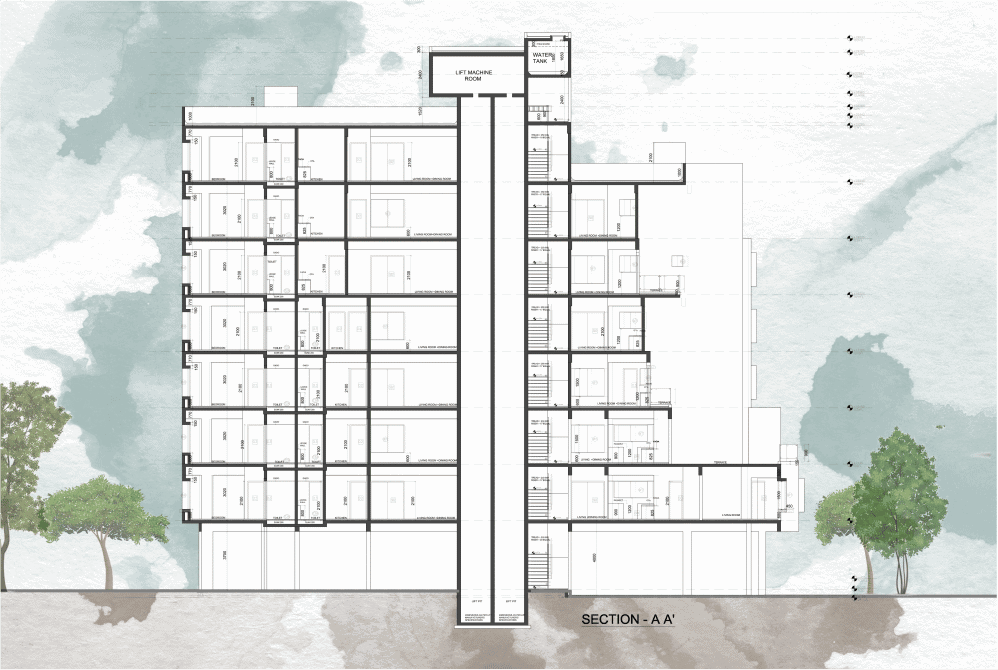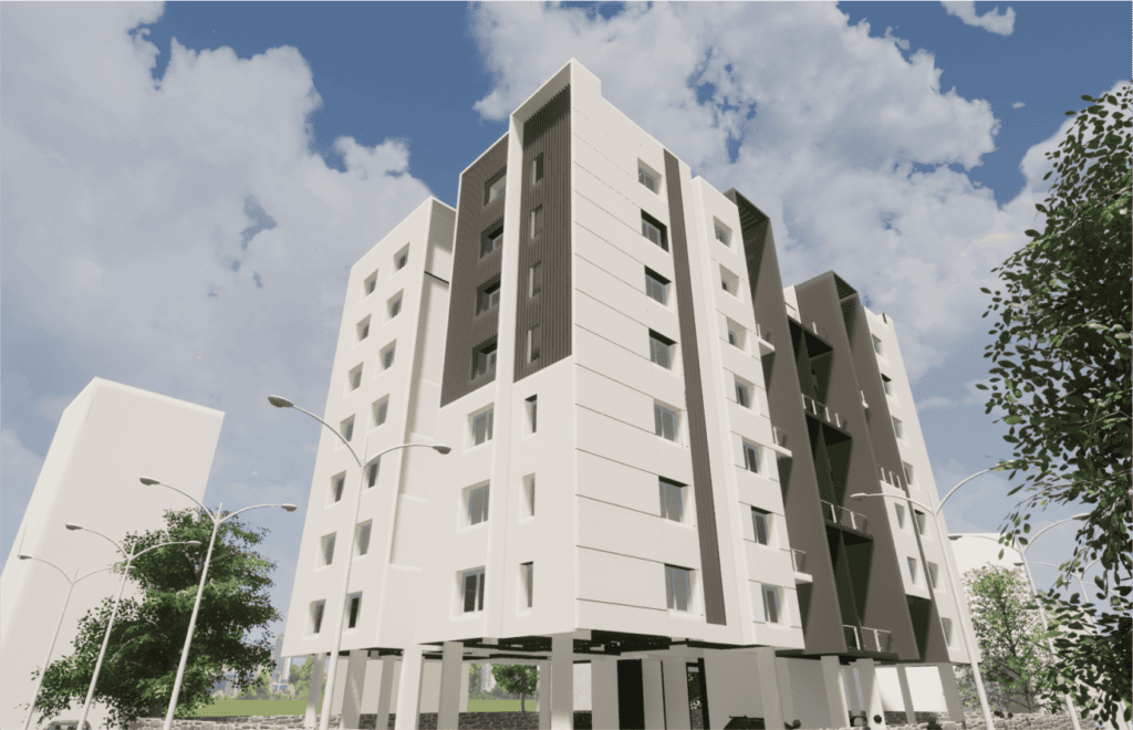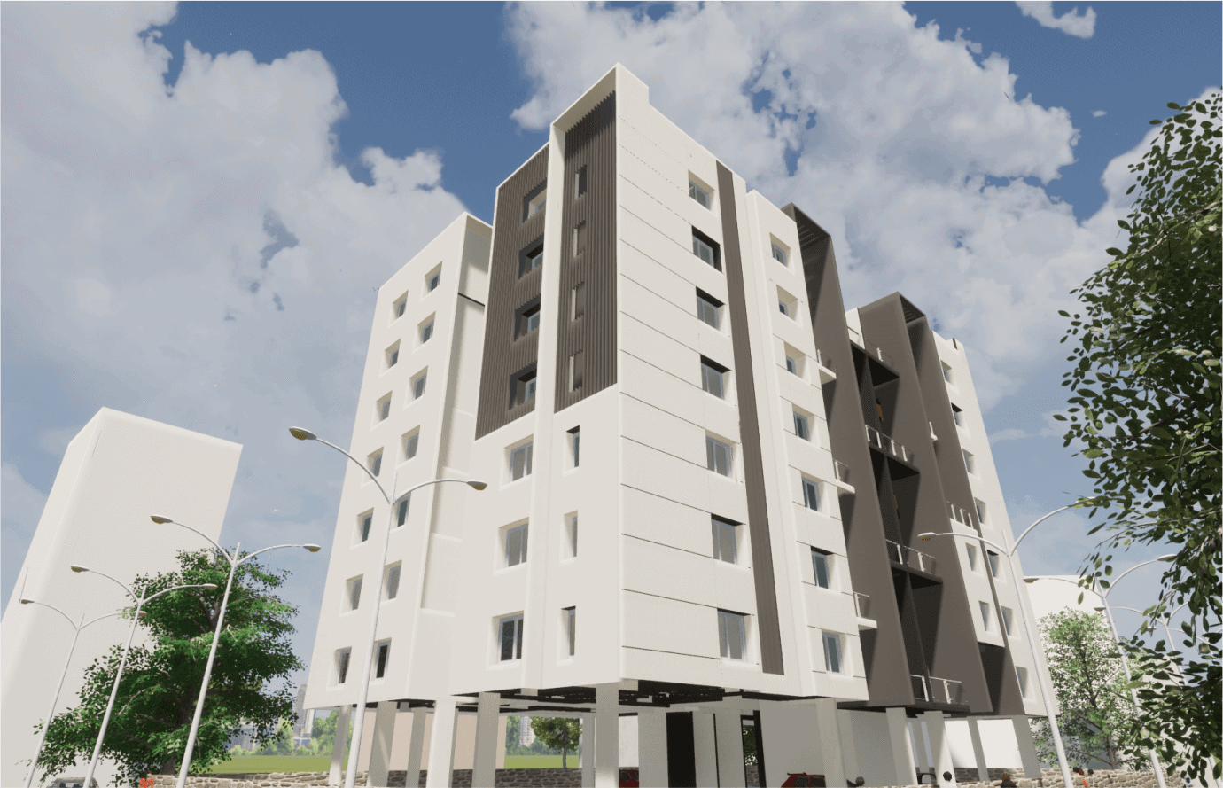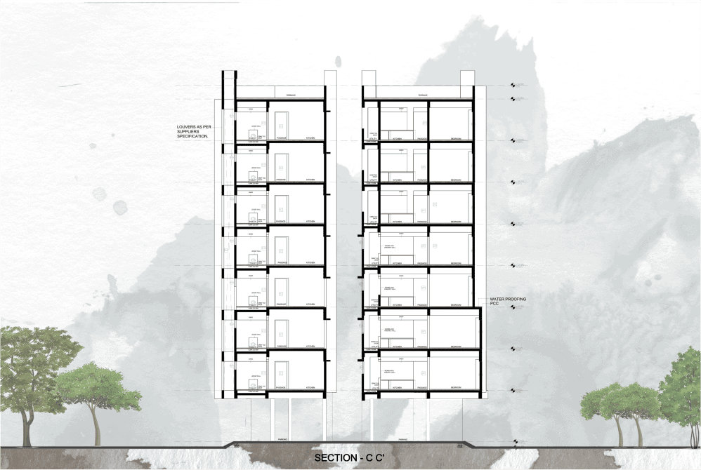 Project – Nishigandha ParkBuilt-up Area – 45000 SqftNishigandha Park Is A Residential Building, Comprising Of 28 Apartments, Each With A Different Layout. The Site Area Being A Constraint, This Is One Of The Challenging Projects Of Ghs. With A Built Up Area Of 35000 Sq.Ft. This Apartment Building Is A Good Experiment Of Massing And Form As Well As Function.